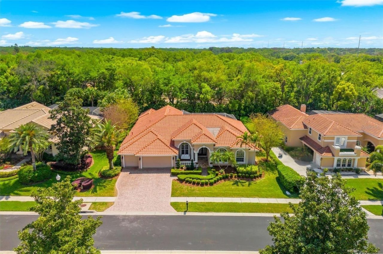 Welcome to 1560 Canopy Oaks Boulevard, an exceptional single-story Mediterranean-inspired estate crafted by acclaimed builder Marc Maconi, featuring architectural elegance, luxury finishes, and functional design. Located within the gated Manning Oaks community, this nearly one-third-acre property presents a rare opportunity to own a home where every detail has been thoughtfully curated for comfort and quality.The north-facing façade showcases a tile roof, block construction, and maintained tropical landscaping. Mature greenery and manicured lawns frame the home's Mediterranean silhouette, creating a welcoming arrival while maintaining privacy. Underground utilities keep the streetscape unobstructed, and the three-car attached garage provides space for vehicles and storage.Step through the double entry doors into over 3,340 square feet of heated living space, where cathedral and vaulted ceilings, expansive windows, and an open floorplan create a light-filled environment. The interior combines seem less wood look luxury vinyl plank flooring throughout. Architectural millwork, including crown molding, archways, and trim, reinforces the home's craftsmanship.The kitchen is outfitted with solid wood cabinetry, a built-in convection oven, gas cooktop, stainless appliances, trash compactor, and wine refrigerator. A high bar is perfect for afternoon snacks or meals. A whole-house reverse osmosis system supports water quality throughout. The kitchen opens to the family room with a masonry gas fireplace, while formal living and dining spaces provide flexibility for everyday use or entertaining.The main-floor primary suite features cathedral ceilings, dual walk-in closets, and access to the screened lanai and covered patio. The en-suite bath is designed for daily comfort. Four additional bedrooms provide flexible space for family, guests, or home offices, along with three full bathrooms.Step outside to a screened lanai and covered patio overlooking a private in-ground pool. The .32-acre lot provides outdoor space while maintaining privacy.Additional features include a whole-house water softener and reverse osmosis system. Located in Flood Zone X, the property provides added peace of mind and is connected to public water, sewer, electricity, and natural gas.Situated within the Palm Harbor University High School zone, this home is zoned for well-regarded schools. Residents also benefit from the gated Manning Oaks homeowners association, which maintains community standards. Nearby access includes Gulf Coast beaches, parks, and local amenities.The layout, finishes, and indoor-outdoor connection support both everyday living and entertaining. With its location, construction quality, and thoughtful design, 1560 Canopy Oaks Boulevard presents a well-rounded opportunity for buyers seeking space, privacy, and long-term value.