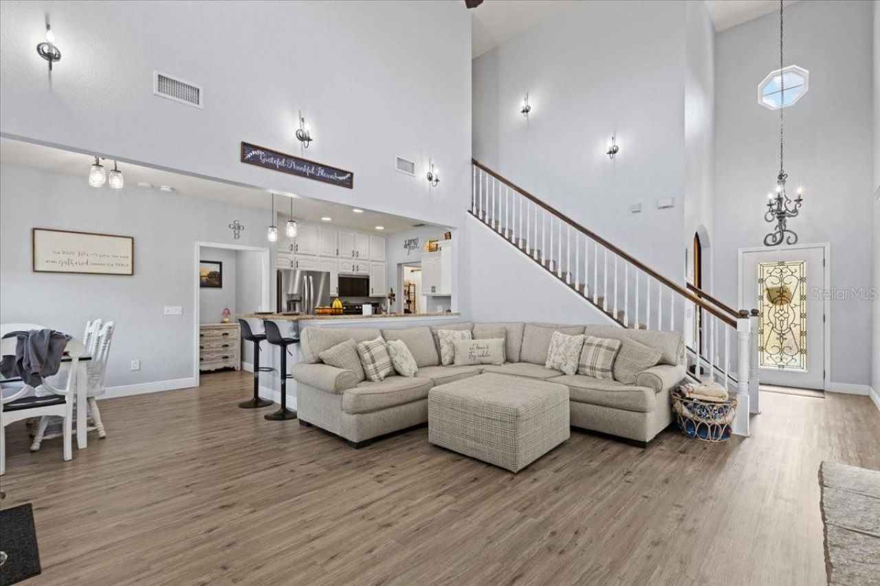 A stunning 4 bedroom/4 bathroom , 2 story home with loft AND Separate 1/1 bathroom mother in law suit on 2.43 gorgeous acres in Gilchrist County , only a short drive to Alachua County for easy commute! This property is a dream located in The Lake in the Woods Subdivision , offering a gorgeous country setting, Gilchrist county LOW property taxes yet an easy drive to Alachua County. This 2006 gorgeous home has been nearly completely remodeled over the last few years, featuring most brand new windows, new flooring, new carpet in the bedroom, all new appliances, new light fixtures, updated bathrooms, fresh paint on the inside and outside and refinished kitchen cabinetry. As you enter the property you are greeted with a complete perimeter fenced yard with a gorgeous new gate offering privacy. The drive leads you through the majestic oak trees to arrive at the home. A perfect 1/1 bathroom mother in law suite with a living room and kitchen, heating and cooling system as well as little fenced area for pets. The yard is spacious and plenty of room to enjoy the outdoors. A new back patio deck, a gorgeous pool and one shed will convey for storage. As you enter the home you see the beautiful foyer with a grand entrance of high gorgeous ceilings. A formal dining room (current use a bedroom) with custom barn doors. A large living room, wood burning fire place with a wonderful view into the back yard. Kitchen is nice and open with all udpated cabinetry and granite counter tops and a beautiful dinette area. Downstairs you also have the oversized master bedroom with an updated bathroom. As well as an extra bathroom perfect for guest. Garage is a two full car garage that houses the vehicles as well. Upstairs you have 3 full bedrooms, 2 bathrooms and an oversized loft (currently use as bedrooms) but would make a wonderful gaming room, entertaining space or office. Every aspect of the house feels like home. It's spacious, inviting and perfect for multi family and/or large families. The pool is perfect for Florida naturally warms all year temps and the location can't be beat. Call today to schedule YOUR tour!