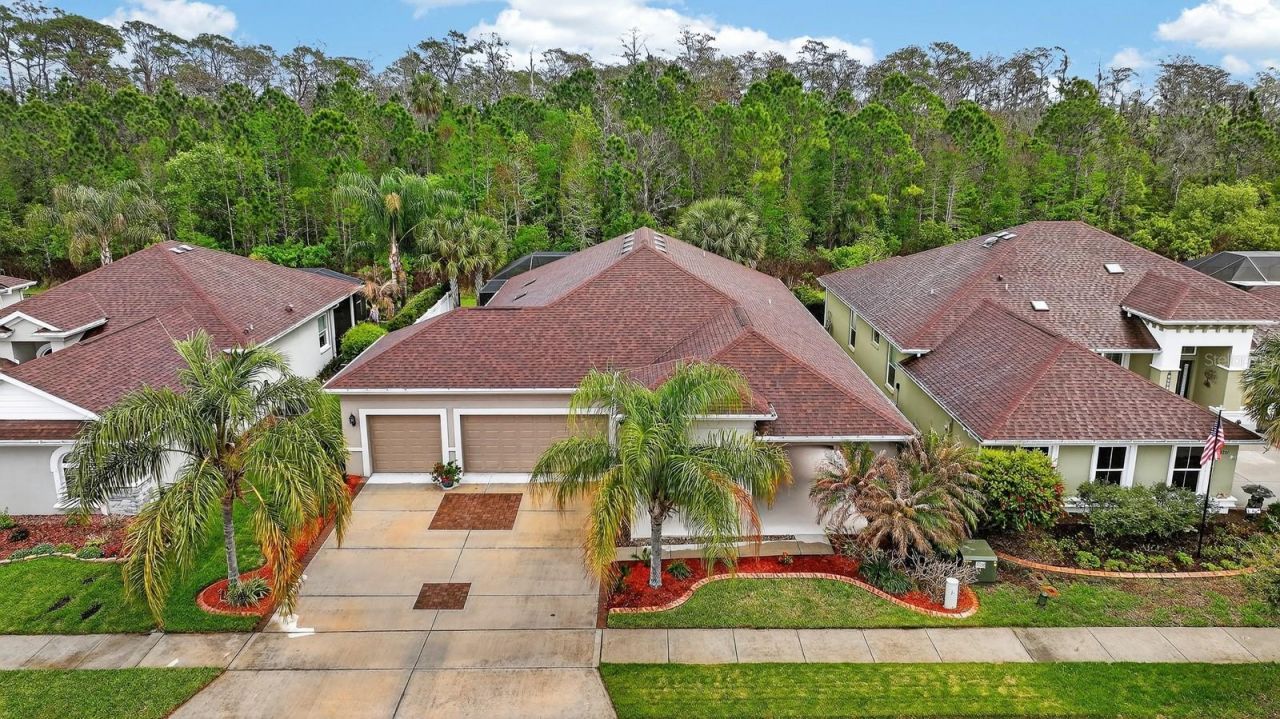 Located in the desirable Verano Lakes section of the Venetian Bay golf community in New Smyrna Beach, this Paytas-built luxury home offers 3 bedrooms, a dedicated office, 2 full bathrooms, and 2,267 square feet of living space.The home features an open floor plan with a split-bedroom layout. The kitchen is ideal for home chefs, boasting granite countertops, ample pantry storage, a Thor Kitchen gas range, and a 5-door KitchenAid refrigerator. It opens beautifully to the main living and dining areas.Interior highlights include a built-in dry bar with wine fridge, a modern gas fireplace, coffered ceilings, porcelain tile flooring throughout the main living areas and primary suite, and a well-appointed laundry room with a stationary tub and custom cabinets.The primary suite offers a large walk-in closet, coffered ceiling, full bath, double vanity, and a spacious walk-in shower.Outdoor living centers around a covered, screened brick-paver lanai overlooking a private preserve backdrop, designed for year-round Florida outdoor living. The lanai features a built-in saltwater built-in pool, providing softer, skin-friendly water with less maintenance and lower annual operating costs . A 3-car garage offers plenty of parking and storage space.Built in 2018, this home is conveniently located near the Venetian Bay Town Center, with easy access to restaurants, a coffee shop, deli, spa, fitness facilities, and the Venetian Bay Golf Club.