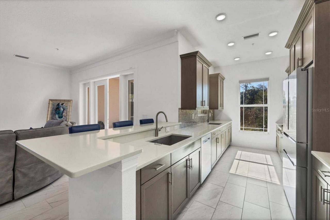 A rare opportunity for effortless, lock-and-leave living in the heart of Lakewood Ranch. This move-in-ready corner unit townhouse in Hidden Creek offers 2,440 square feet of refined living space, enhanced by additional windows that flood the home with natural light. Designed for buyers who value convenience, quality and lifestyle, this residence combines thoughtful design with everyday ease. The two-story floor plan includes three bedrooms, 2.5 baths and a versatile den, ideal for a private office, media room or guest retreat. A private in-home elevator sets this property apart, providing seamless access to all levels and exceptional long-term livability. The main level showcases soaring 10-foot ceilings and an open, light-filled great room that flows effortlessly into the dining area and gourmet kitchen. The kitchen is beautifully appointed with quartz countertops, upgraded stainless steel Bosch appliances, dual sinks for streamlined meal prep and organization, and abundant soft-close cabinetry, ideal for entertaining or everyday living. Upstairs, generously sized bedrooms offer privacy and flexibility, while the primary suite impresses with ample closet space and a spa-inspired bath featuring a Greek-style shower with marble flooring. A two-car garage, covered entry and maintenance-free exterior make this an exceptional option for second-home buyers, investors or anyone seeking a simplified lifestyle. Residents enjoy resort-style amenities, including a heated pool, spa, firepits and outdoor grilling areas. Ideally just minutes from University Town Center, Waterside Place and Lakewood Ranch Main Street, with quick access to world-class dining, shopping, golf and Sarasota's renowned beaches, this is a turnkey corner-unit opportunity for buyers ready to purchase with confidence and ease.